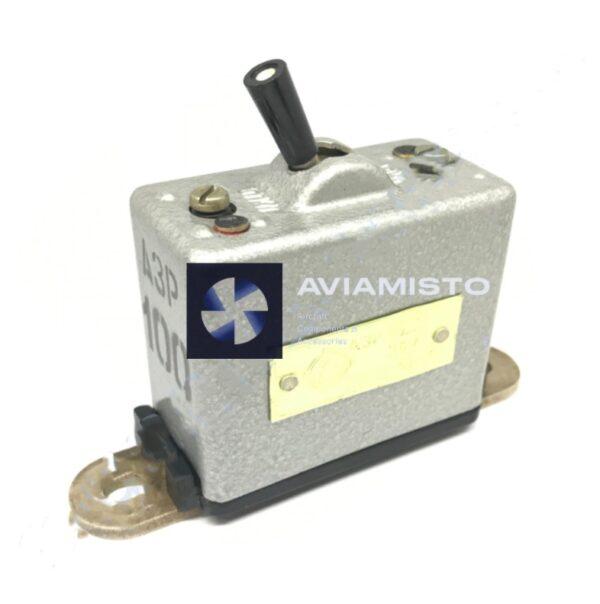 Automatic circuit breaker AZR-100K is designed for automatic shutdown of electricity consumers in case of overloads and short circuits in DC circuits at voltages up to 30V in stationary and mobile installations. The machines with the “K” index are made under the illumination of red light and differ from the machines without the index by the application of white paint to the end of the handle instead of the phosphor mass. Automatic circuit breakers AZR-100K have a free release mechanism, which does not allow keeping the contacts closed until the bimetallic plate has cooled to a certain temperature.