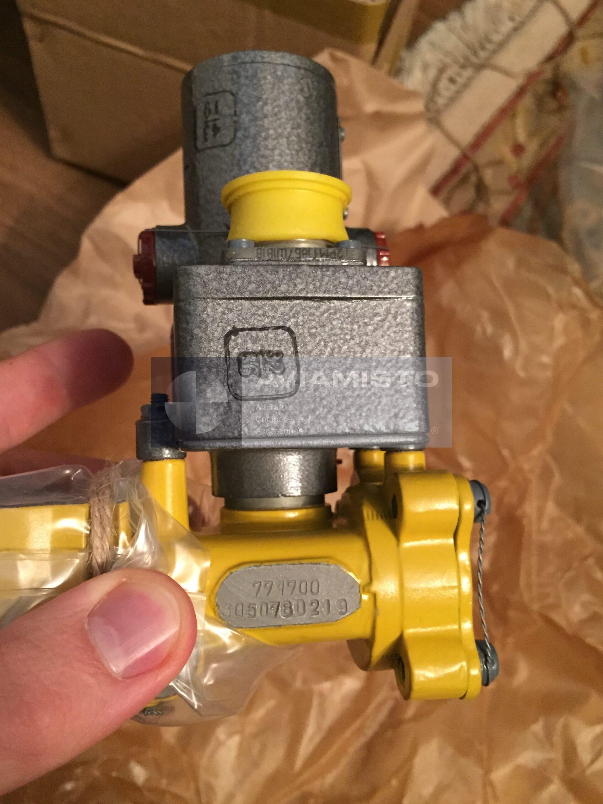 The 771700 is an aircraft shut-off valve equipped with an integrated electromechanical actuator and designed for remote opening and closing of fuel flow in aircraft fuel systems.