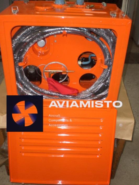 The onboard portable hydraulic unit for autonomous testing of the hydraulic system (246-9977-00) operates on direct current electricity from an airfield power source or from an onboard source (with the AI-9V engine running). The hydraulic unit is a portable unit with sleeves for connecting to the onboard hydraulic panel of the helicopter and allows one to check the performance of its hydraulic systems one by one.