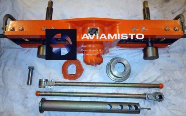 Tire puller, type SSh04-00, is designed for removing the tires of the wheels of the front and main legs of the chassis and consists of a body, cargo screws, adjusting screws and a central axle with replaceable bushings.