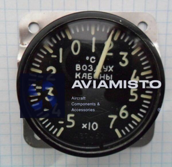 Air thermometer (in-cab) TV-45 is designed to measure the air temperature in the cockpit. The principle of operation of a thermometer is based on the property of a bimetal to deform when the temperature changes. The sensitive element of the device is a bimetallic spiral spring, one end 2 of which is fixed motionless, and the other is connected to the pointer arrow.