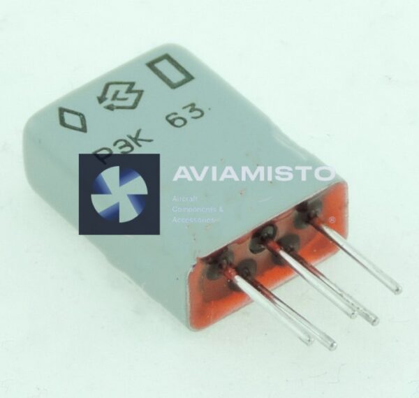 Relay REK63V RVIM.647612.029-04 sealed, subminiature, in a metal case. Electromagnetic, low-frequency, non-polarized, single-stable, DC-controlled, with one changeover contact.
